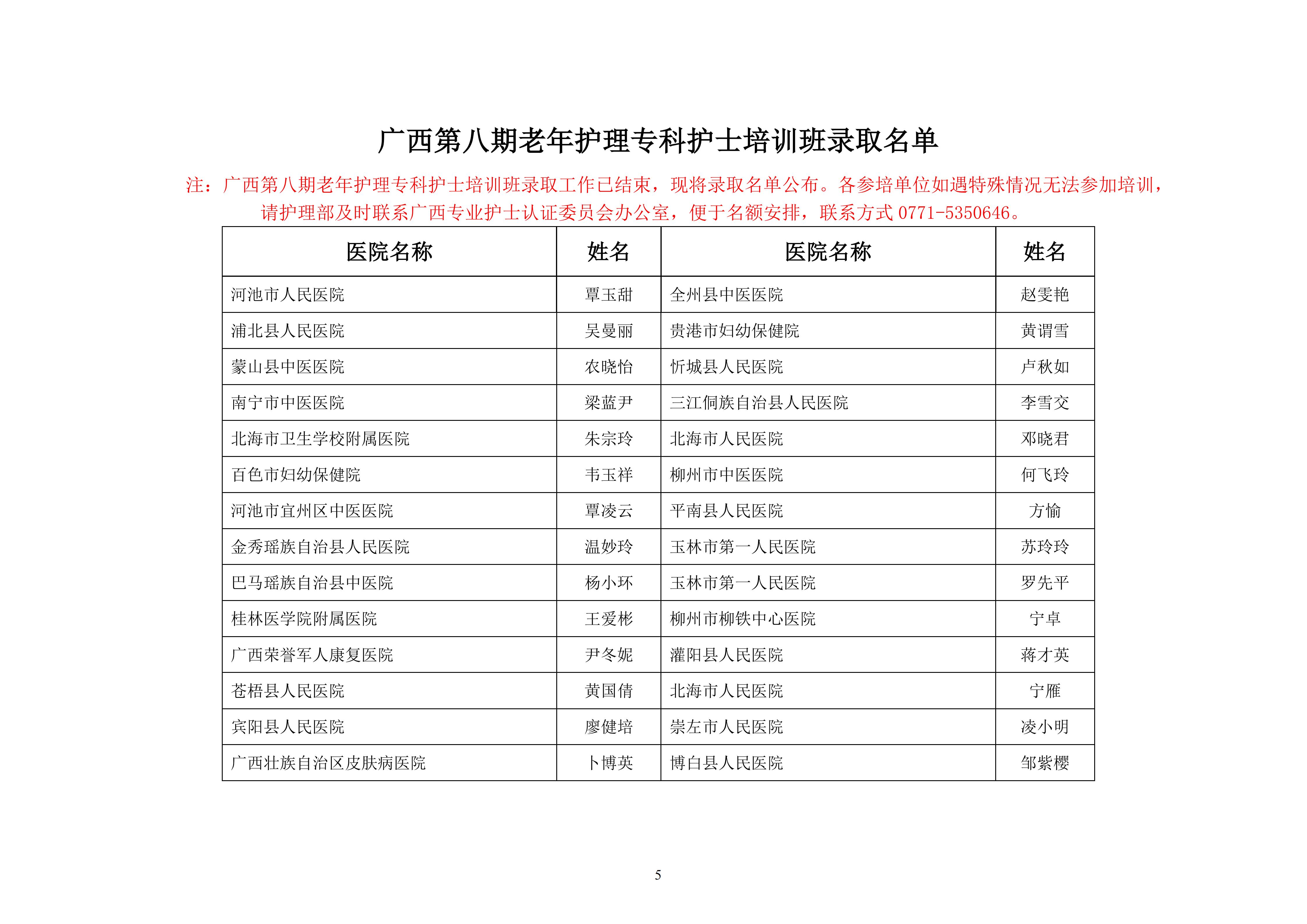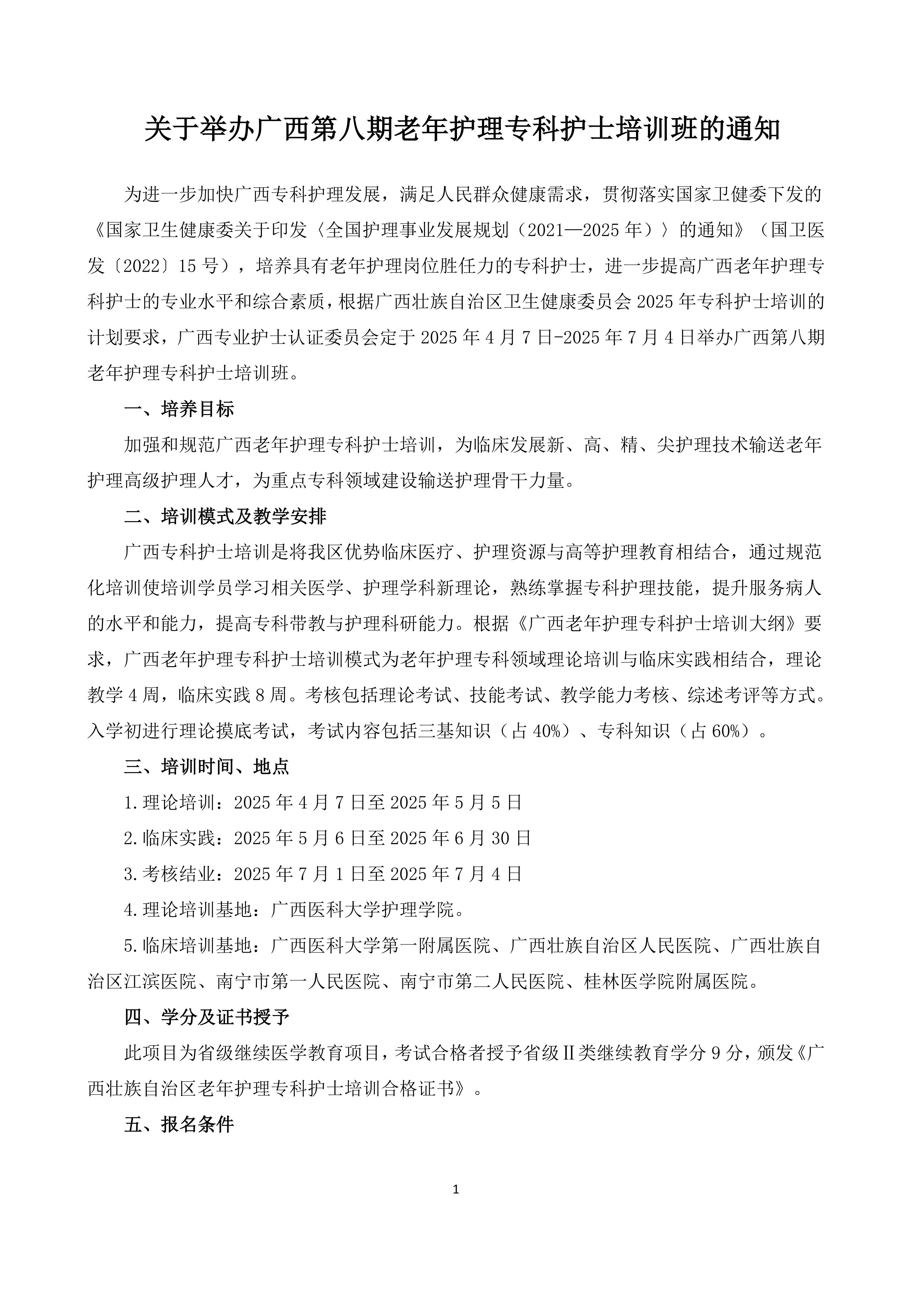 关于举办广西第八期老年护理专科护士培训班的通知