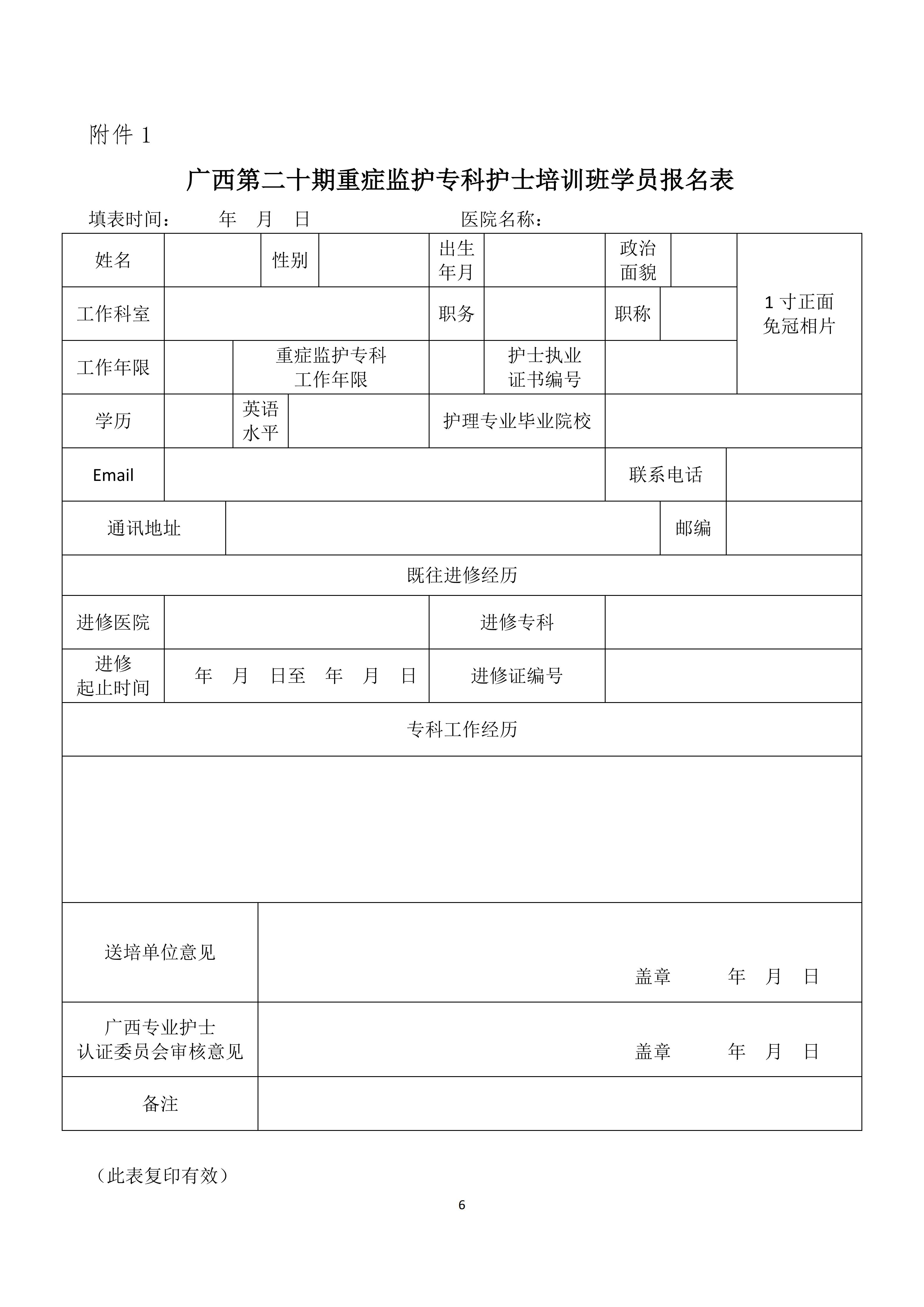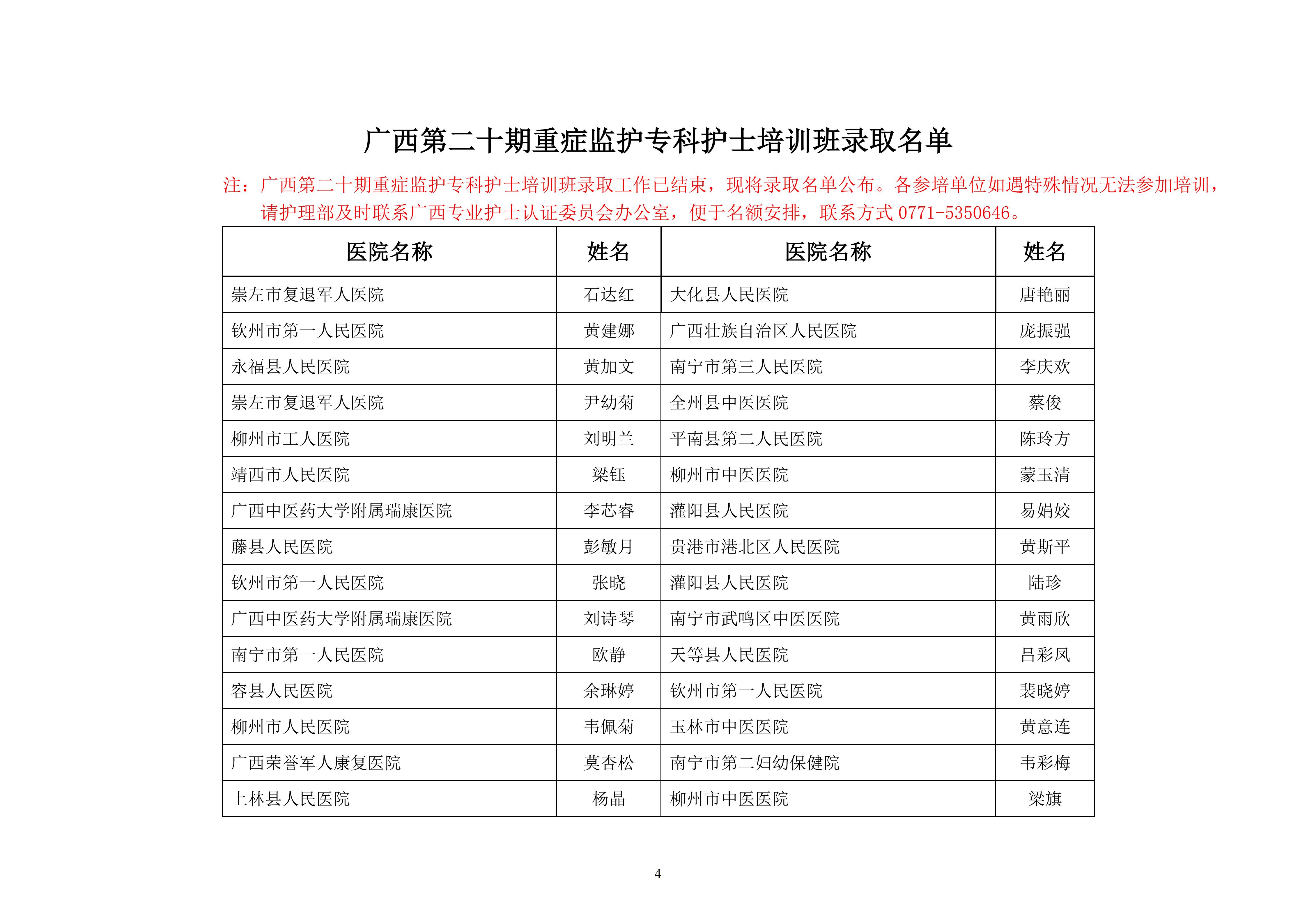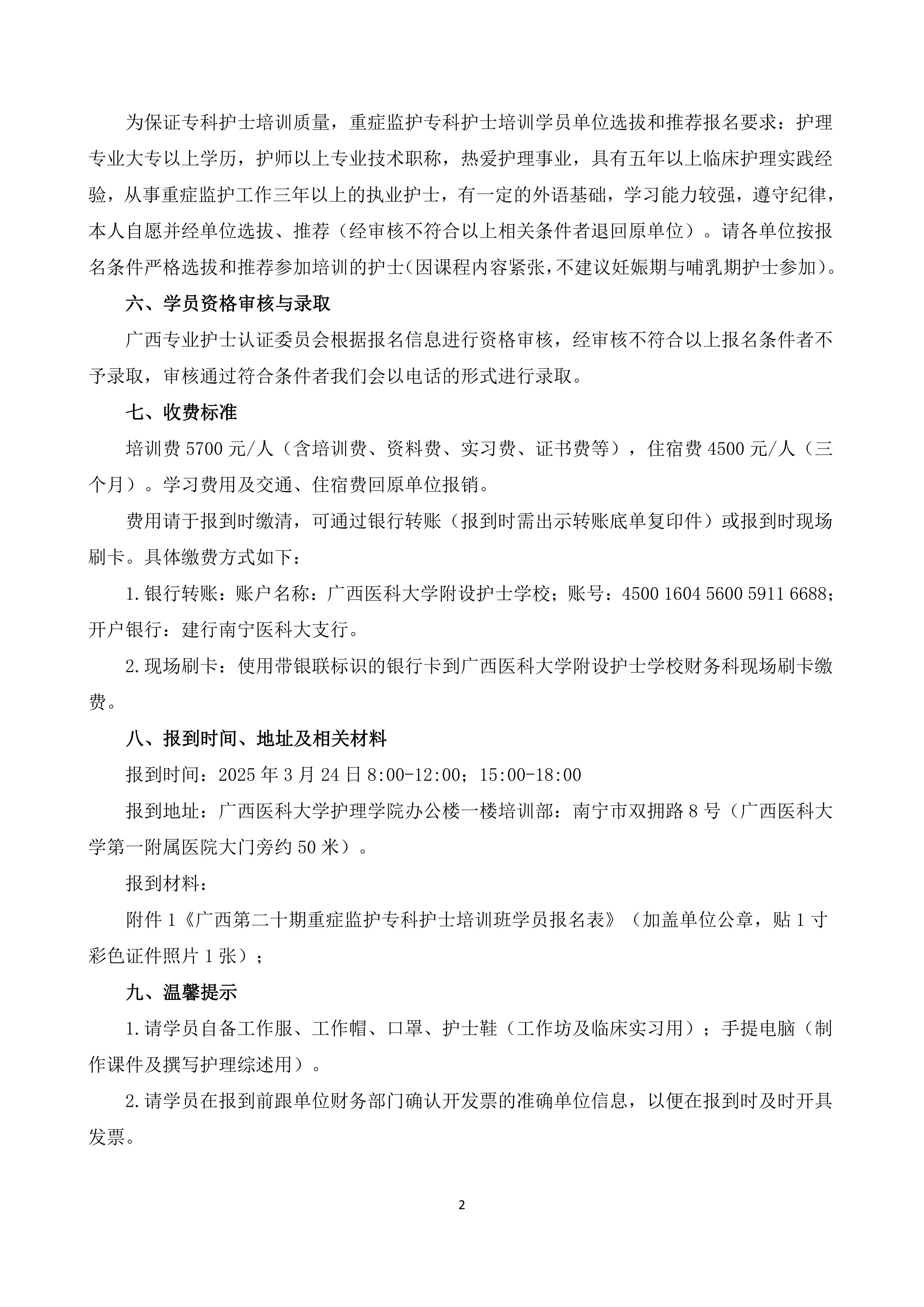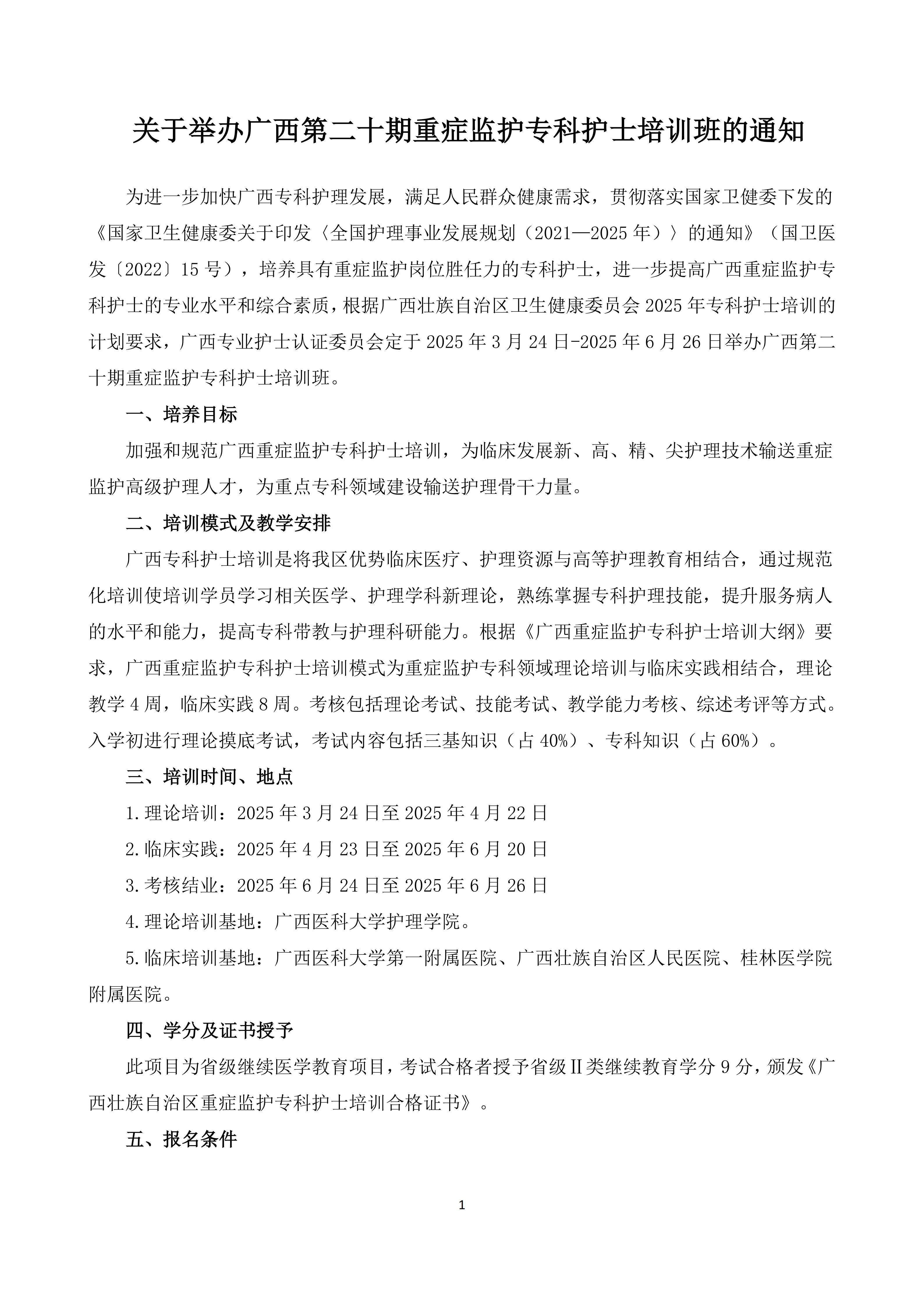 关于举办广西第二十期重症监护专科护士培训班的通知