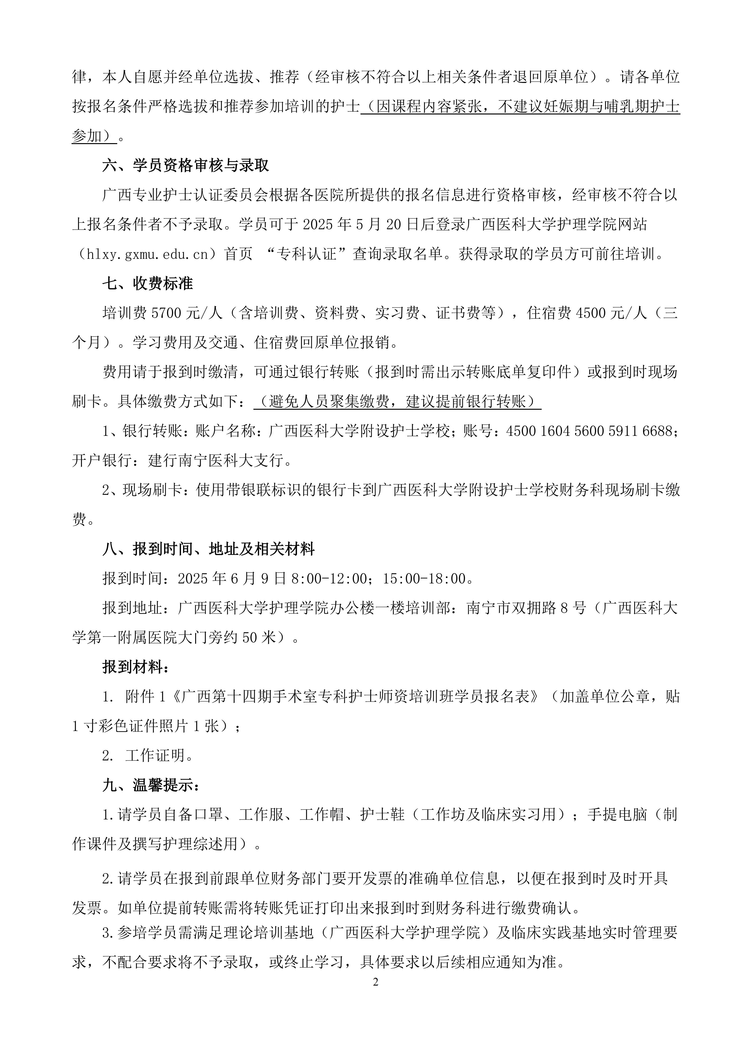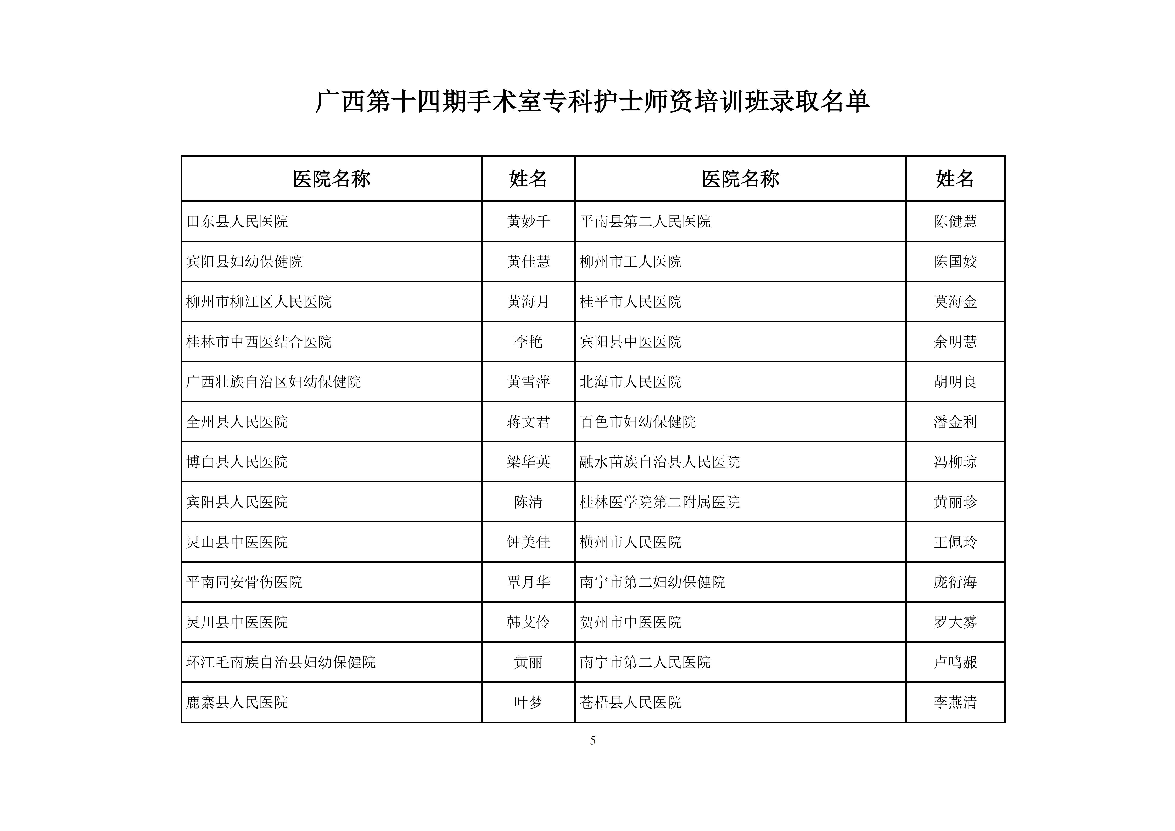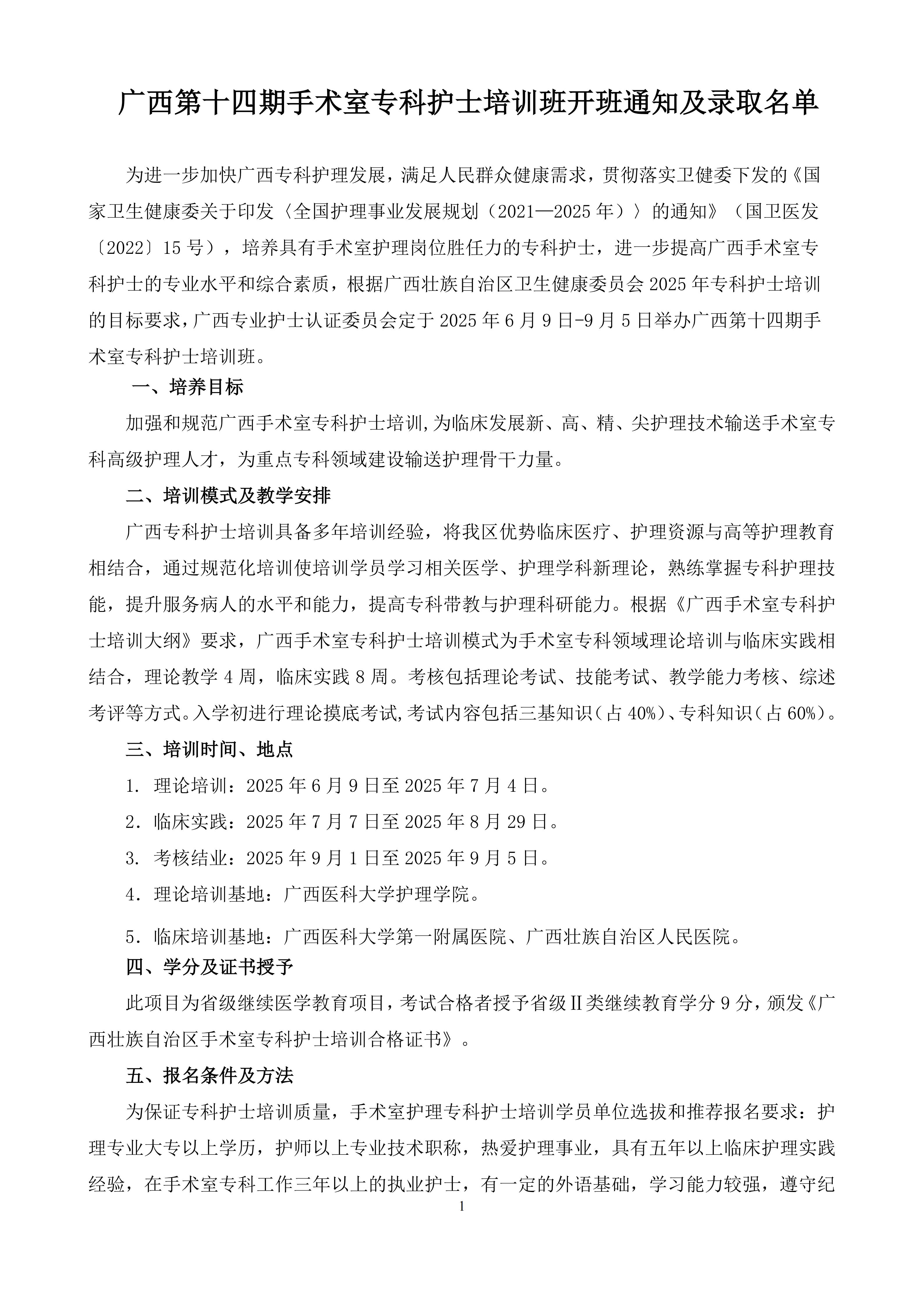 广西第十四期手术室专科护士培训班开班通知及录取名单
