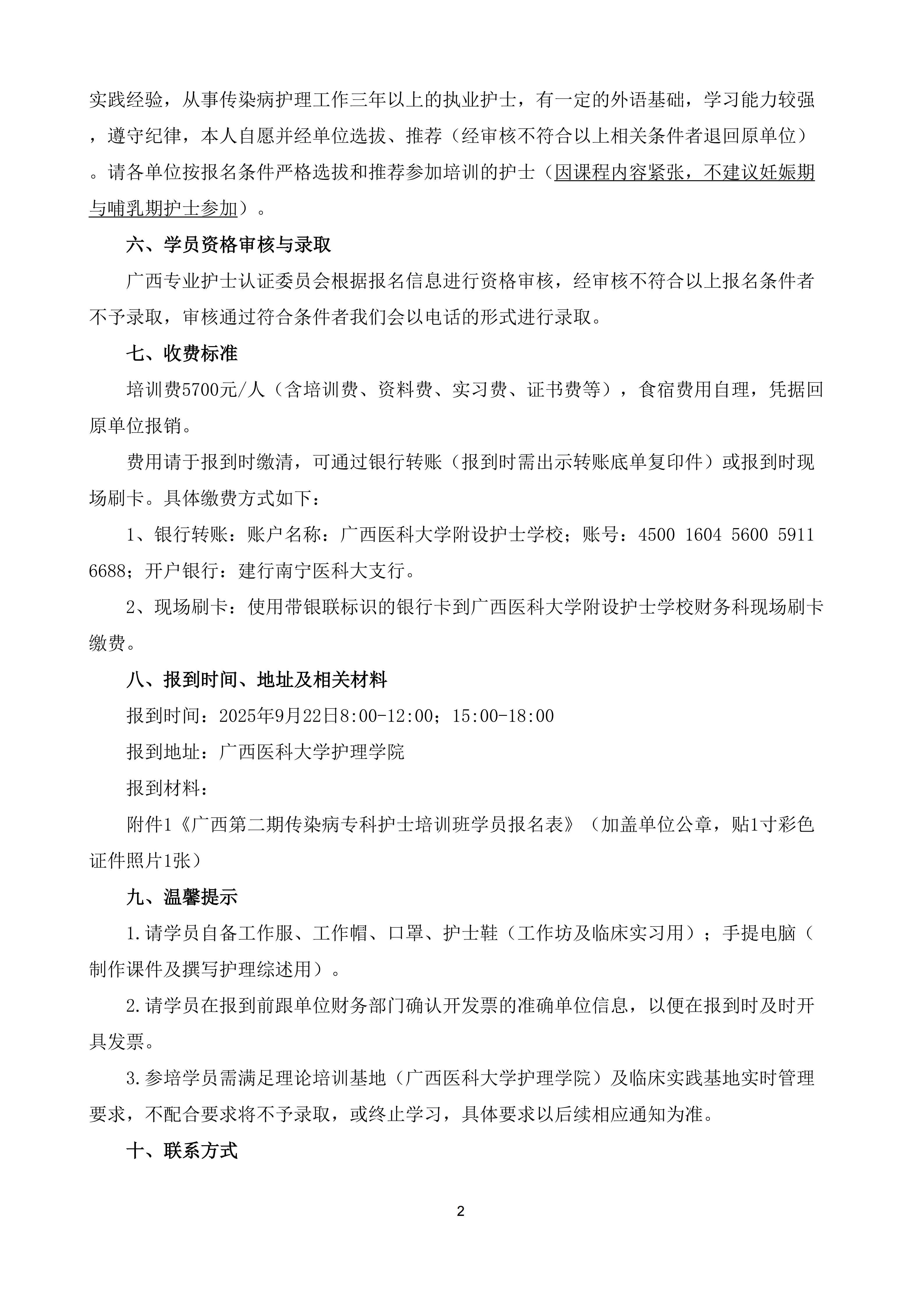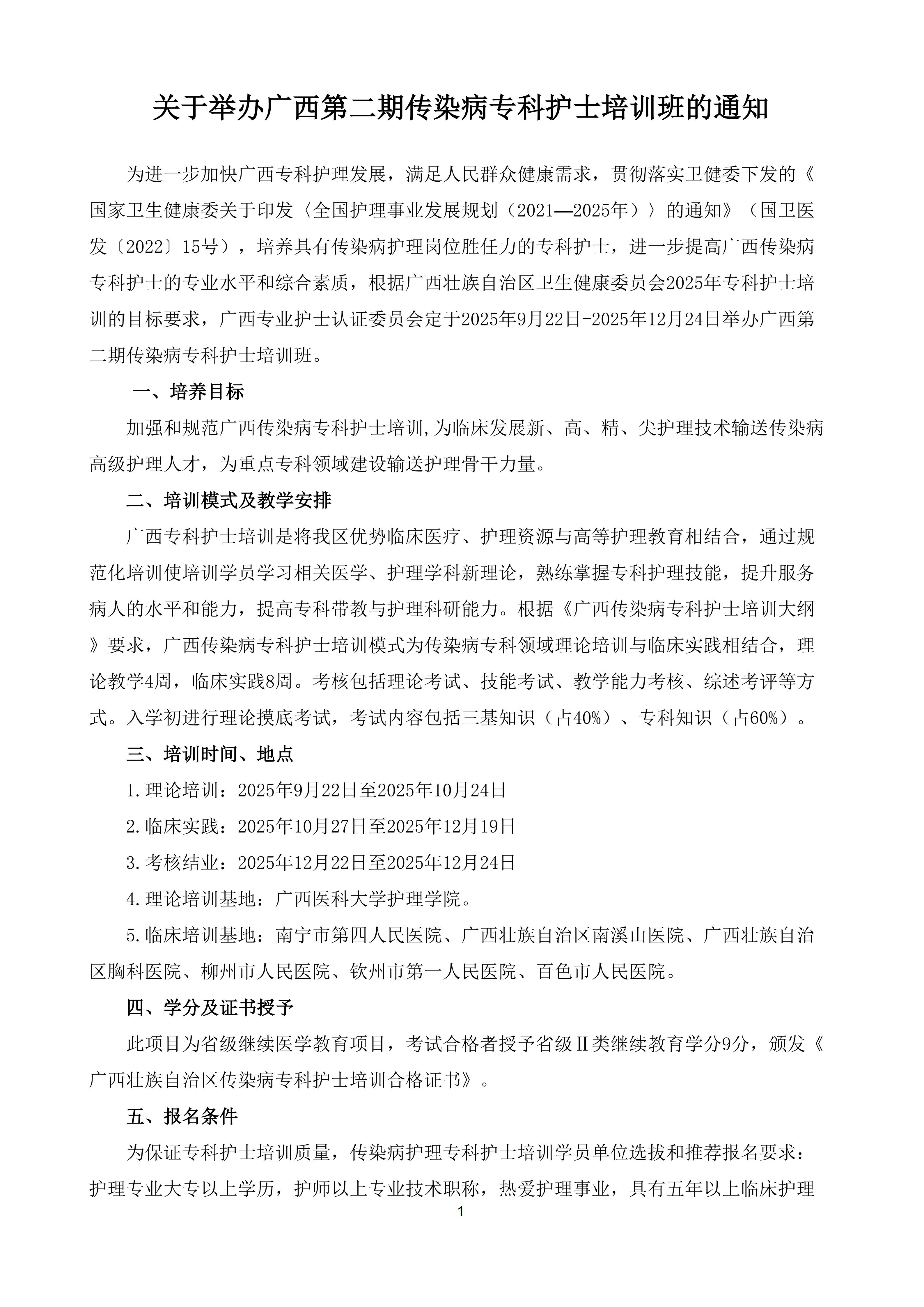 关于举办广西第二期传染病专科护士培训班开班的通知及录取名单