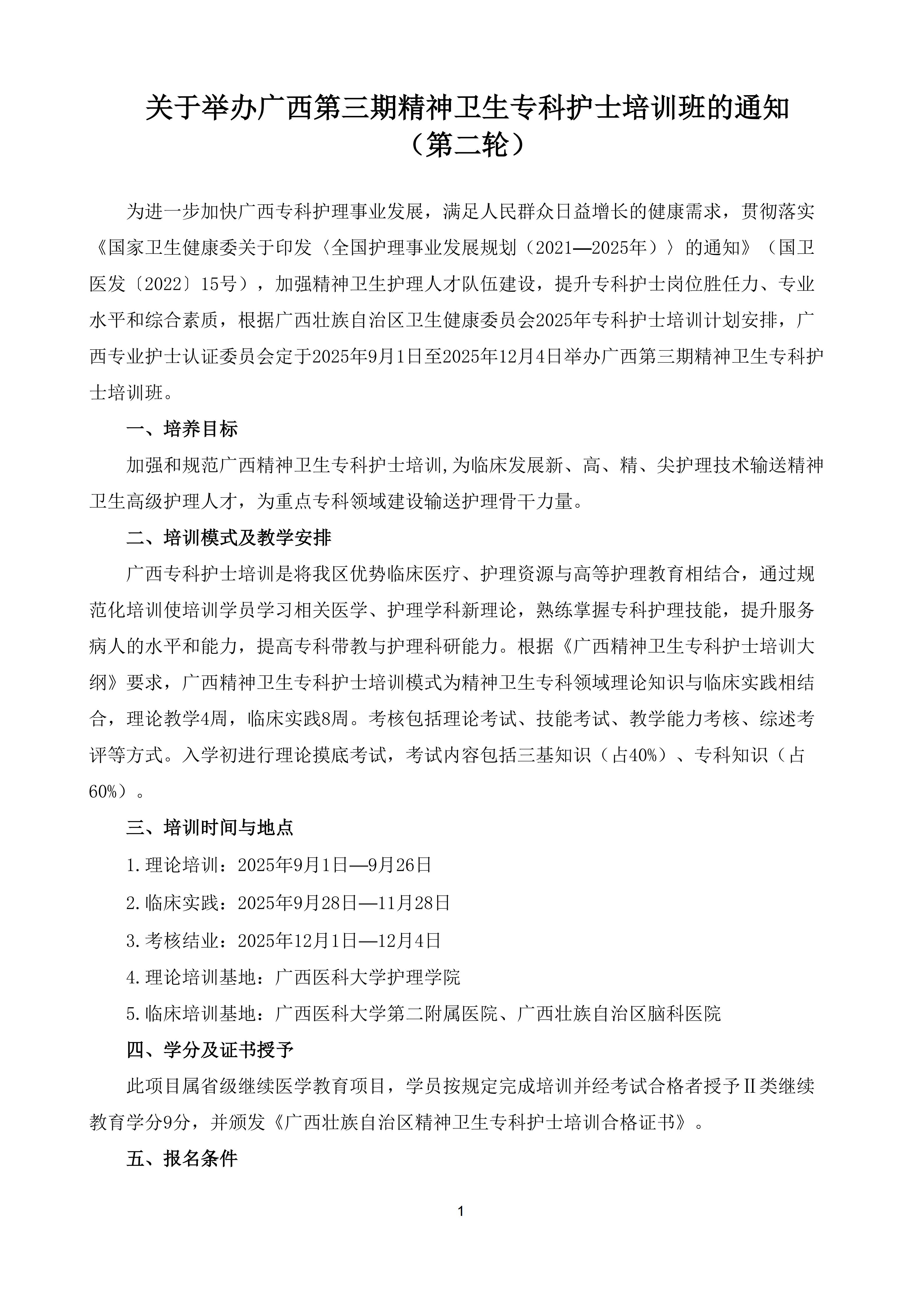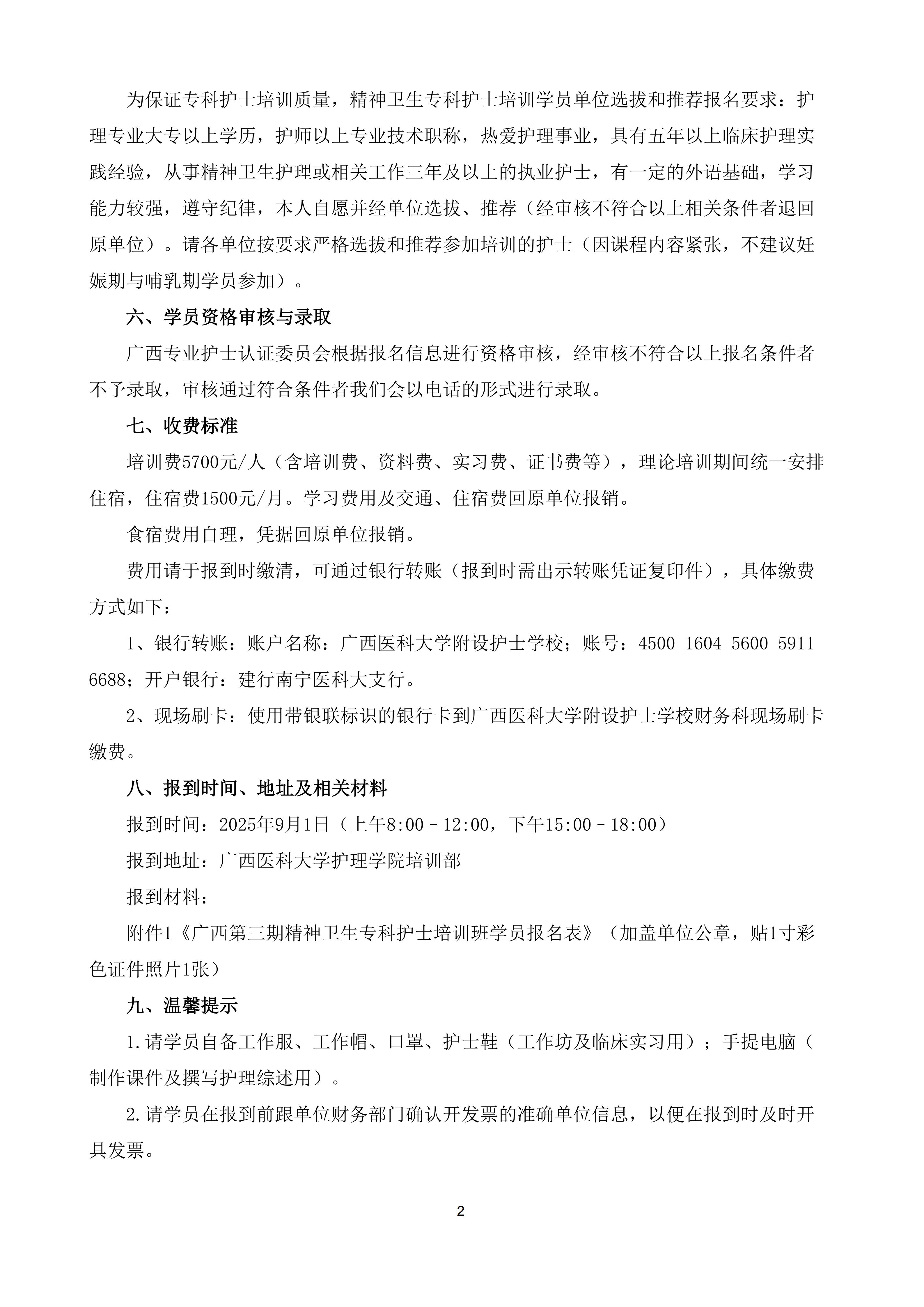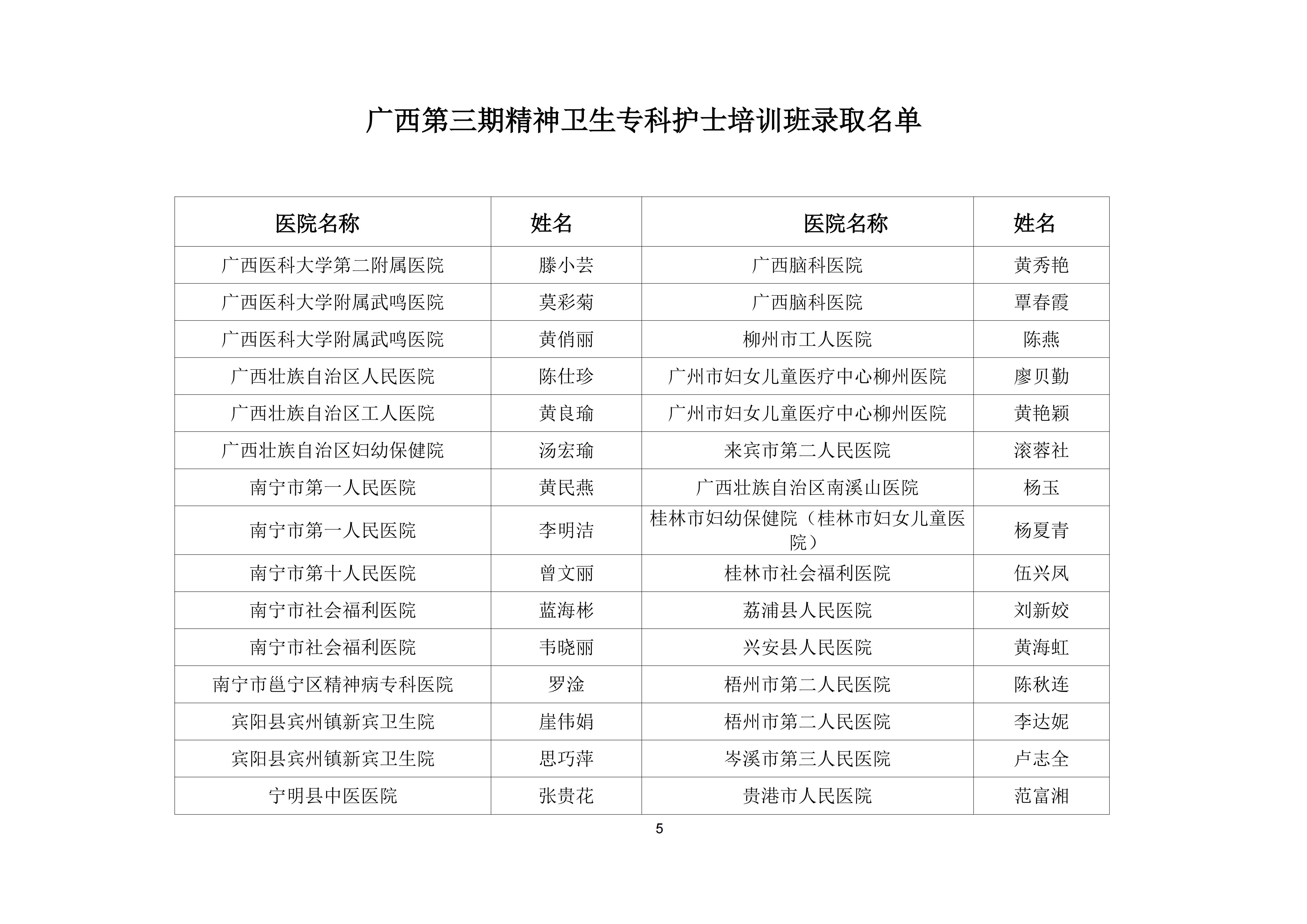关于举办广西第三期精神卫生专科护士培训班的通知(第二轮)及录取名单