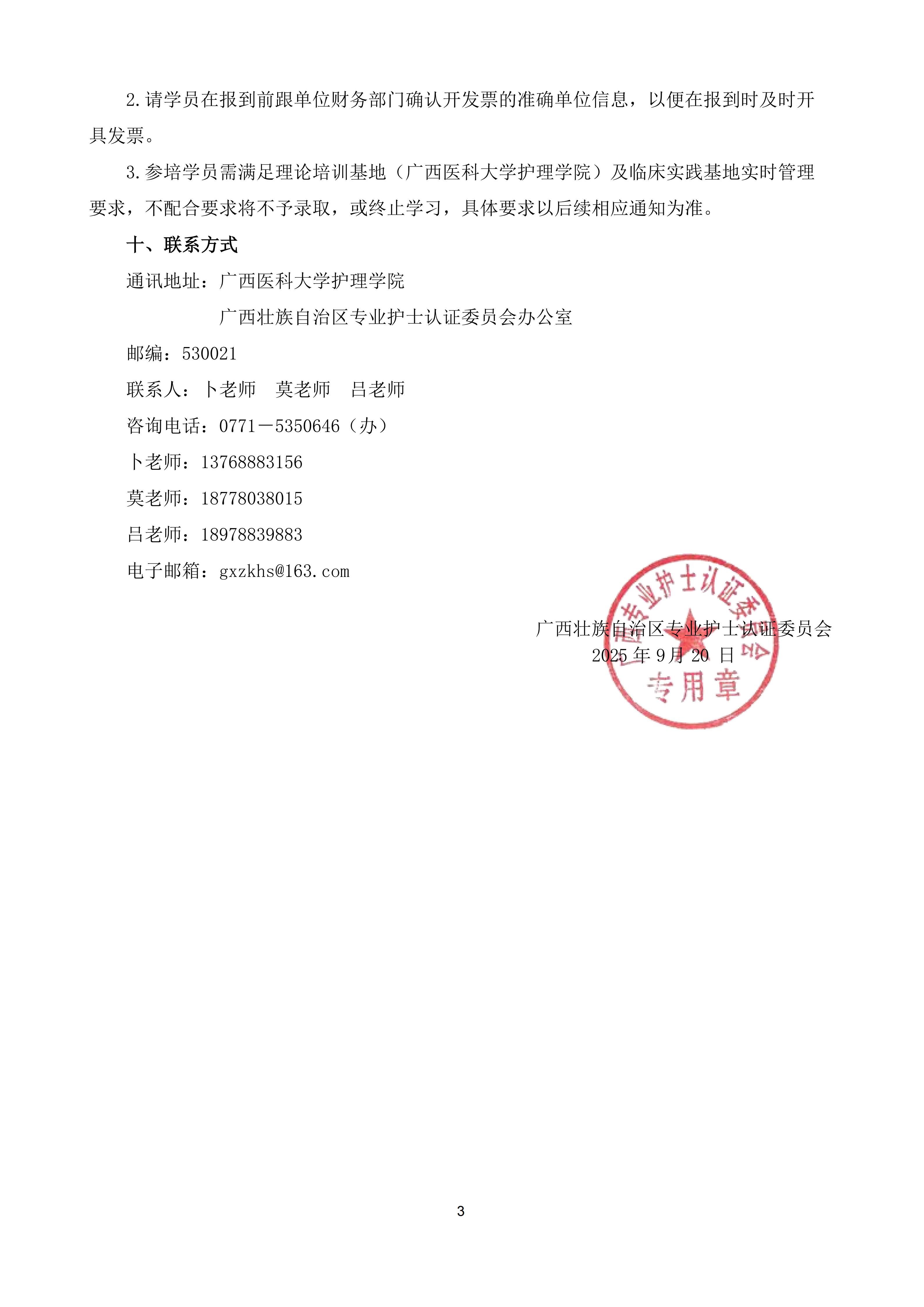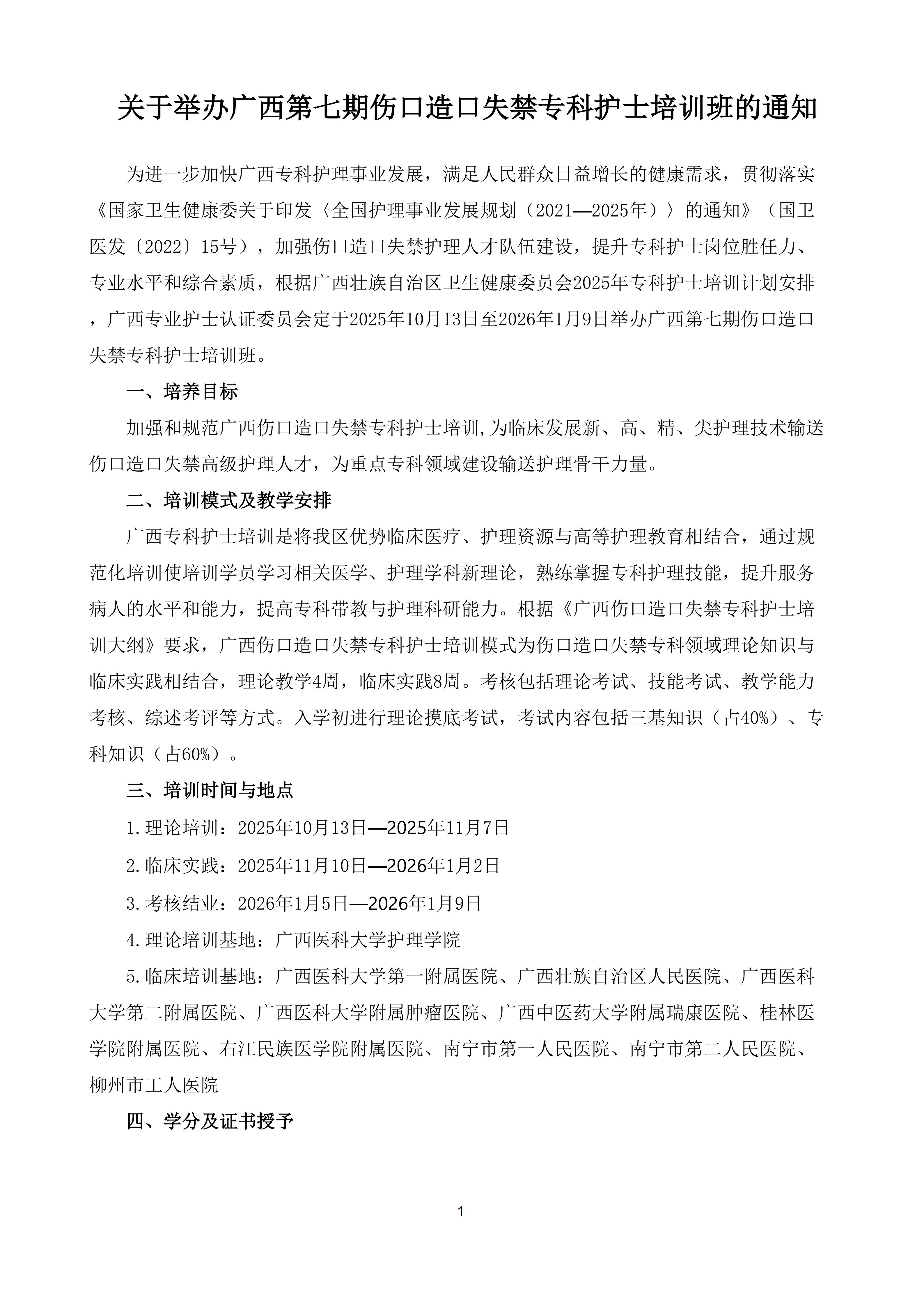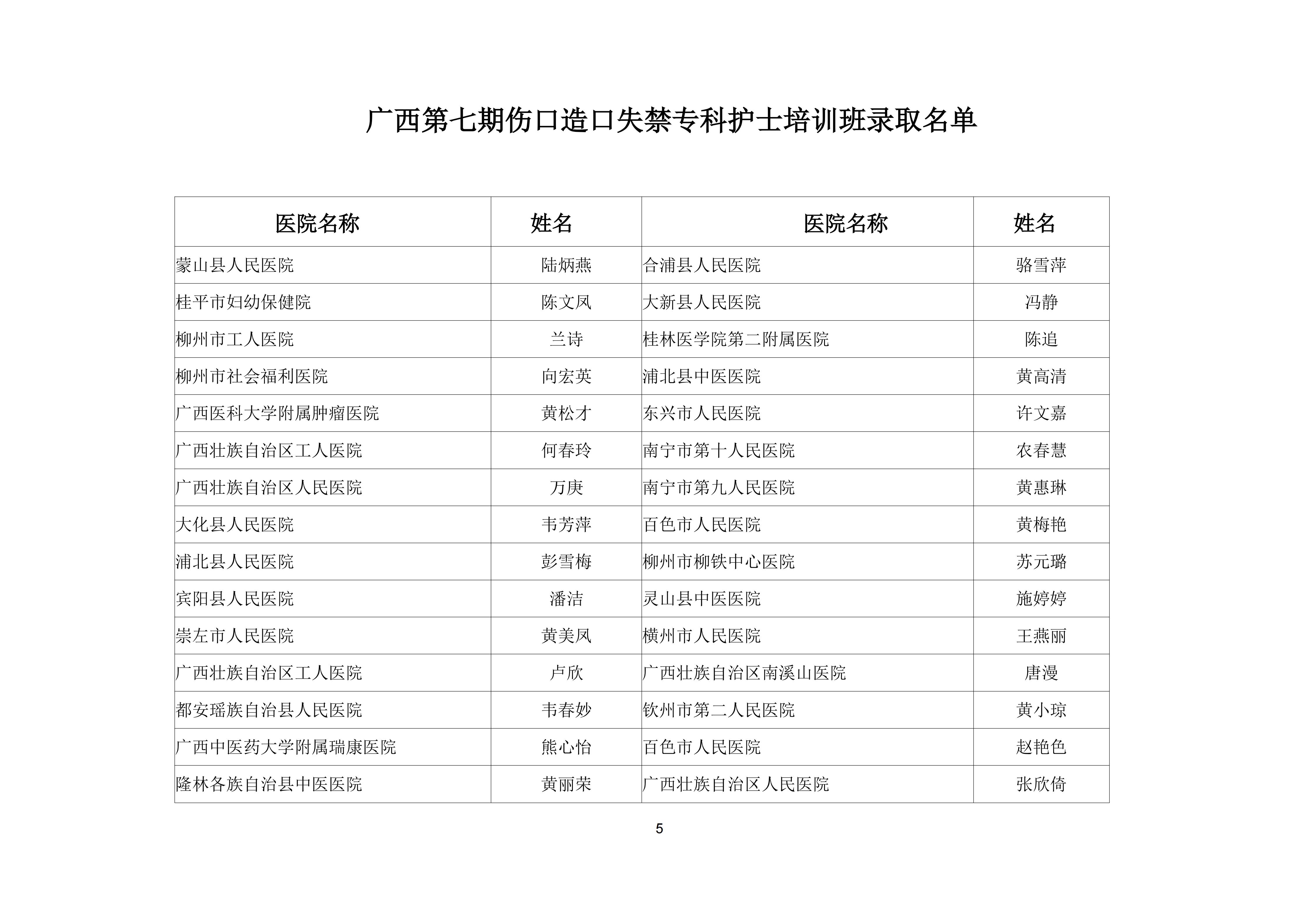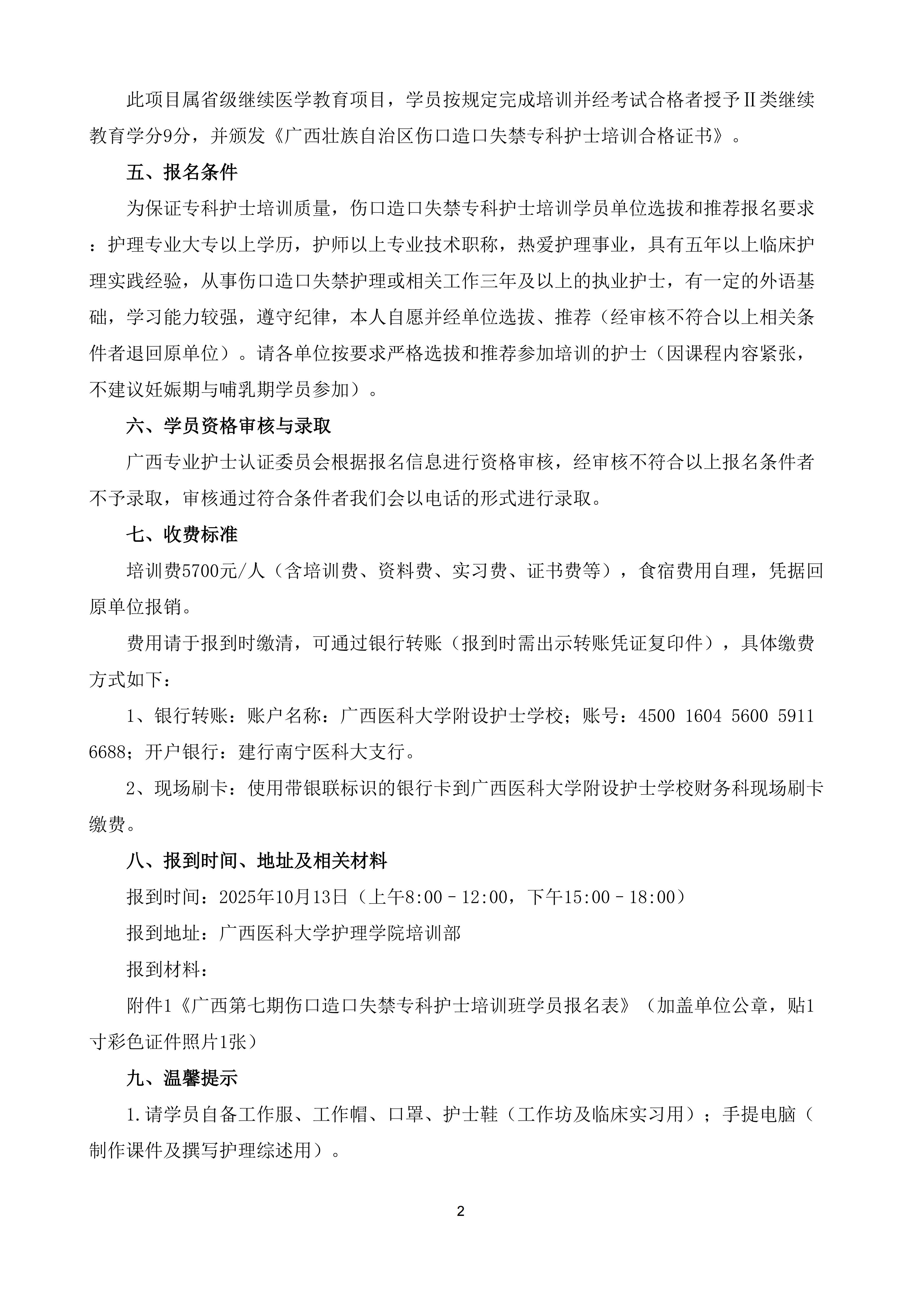 关于举办广西第七期伤口造口失禁专科护士培训班的通知及录取名单