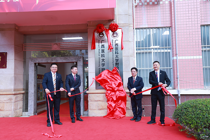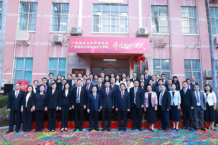10月16日上午,广西医科大学护理学院、附设护士学校乔迁揭牌仪式在校本部102馆举行。广西医科大学党委书记陈川、校长曾志羽,党委常委、副校长卢德成,各职能部门、二级学院负责人及师生代表共同见证这一历史性时刻。仪式由卢德成主持。