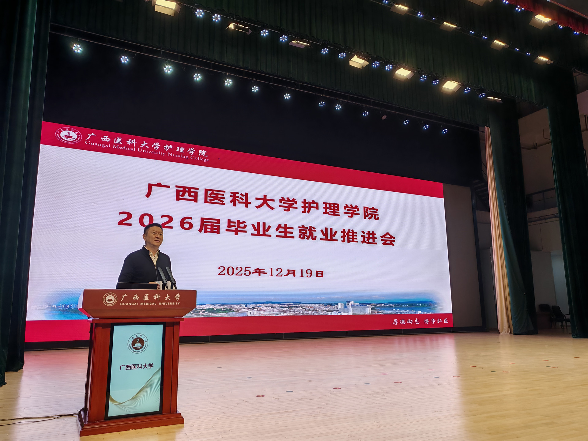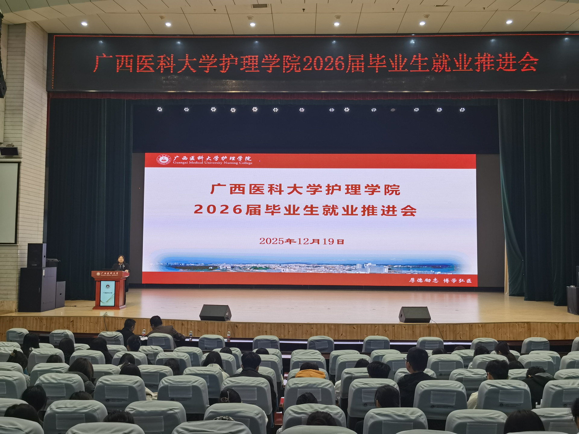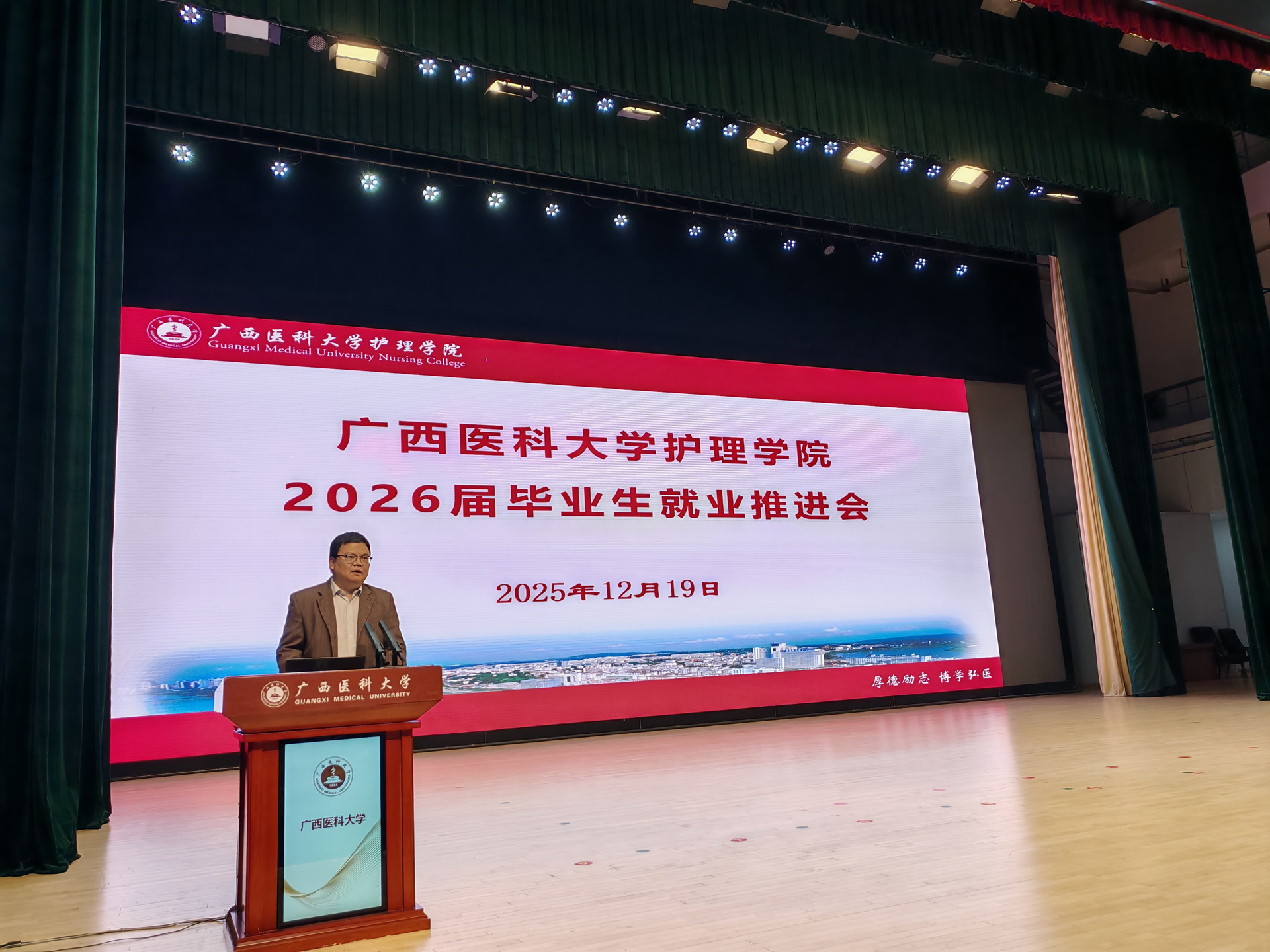 2025年12月19日上午,护理学院在校本部图书馆演讲厅召开2026届毕业生就业推进会。学院党委书记谭机永、院长程继文、毕业班辅导员、班主任及2026届毕业生参加会议。会议由副院长刘媛航主持。