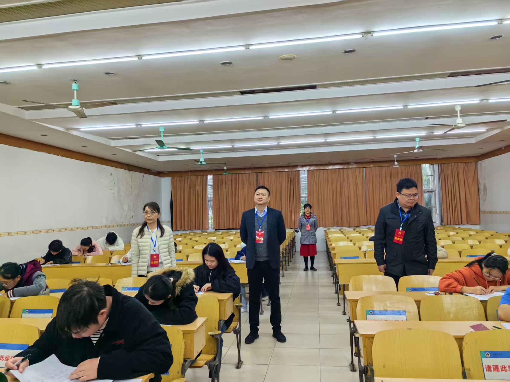 近日,护理学院2025年秋季学期期末考试有序进行。为严肃考风考纪、维护考试公平、强化教学质量监控,学院党委书记谭机永、院长程继文带队组成巡考小组,深入各考场开展全面巡查。