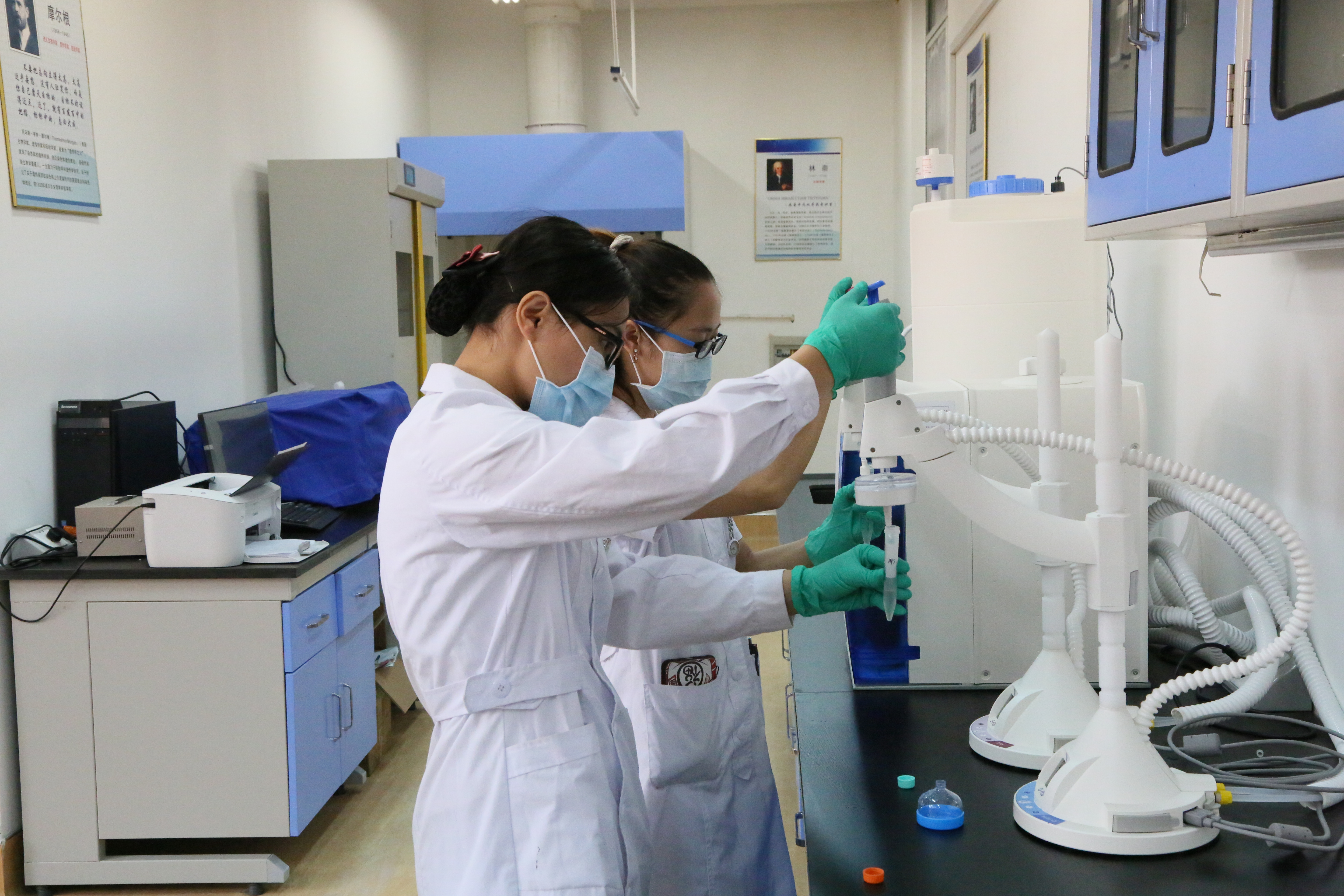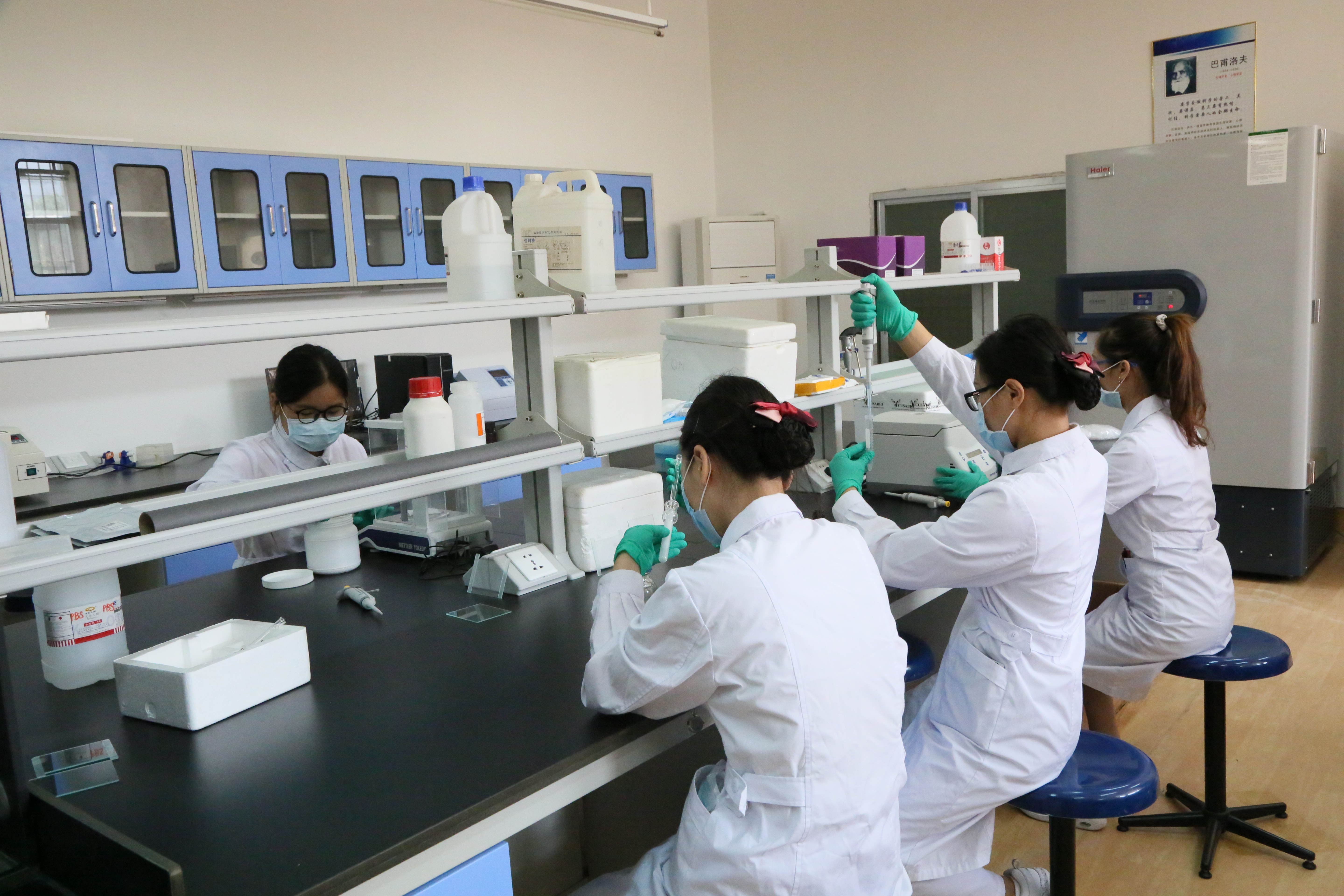 本中心面积133m²,仪器设备总值150万元,已配备普通倒置显微镜、研究级倒置荧光成像分析系统显微镜、研究级正置荧光成像分析系统显微镜、纯水/超纯水一体化系统、全波长酶标仪、二氧化碳培养箱、单道、多通道移液器、超低温冰箱、超净工作台、冰箱、摇床、水浴箱、液氮罐、离心机、通风橱等。可开展细胞培养、ELISA、微量元素测定、氧化应激检测、标本采集和保存等实验项目。